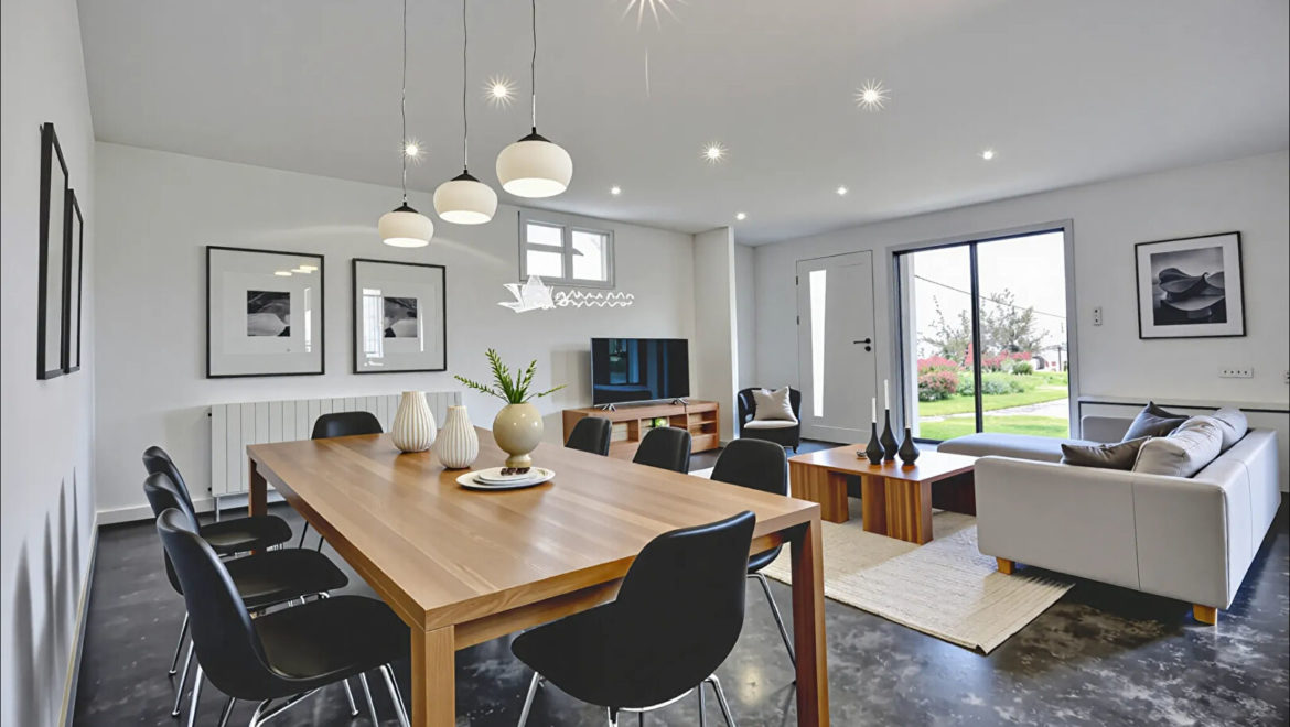 Il offre au rez-de-chaussée une grande pièce de vie de près de 40m² avec accès jardin 304m², une cuisine aménagée ouverte, trois chambres, une buanderie, une salle d’eau et un WC indépendant. Places de parking.