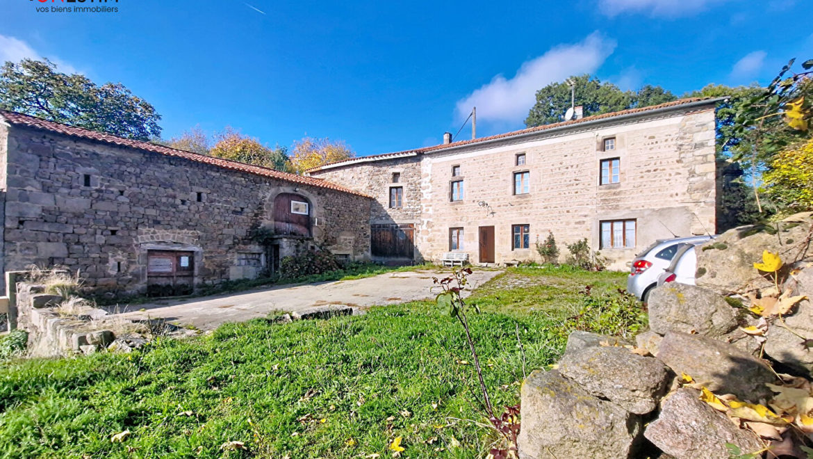 DU POTENTIEL ! Seulement chez « ONESTIM » Montbrison. Sur les hauteurs de Montbrison à 15min avec vue dégagée. Pour amoureux de la pierre et de la campagne découvrez cette bâtisse en pierre offrant près de 170m² habitable avec cuisine, salon, deux caves, 4 chambres, salle de bains, garage. Dépendances attenantes de 390m². Petit F3 indépendant avec coin cuisine, salon, chambre et dalle de bains. DPE : G et F