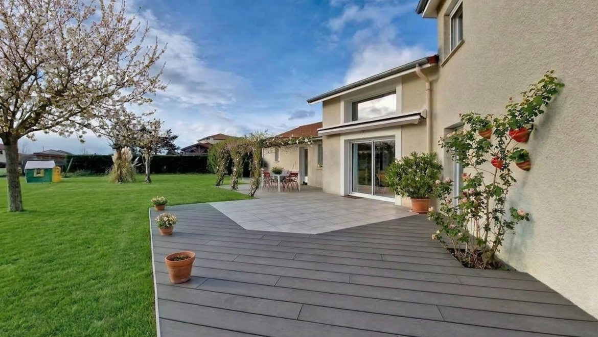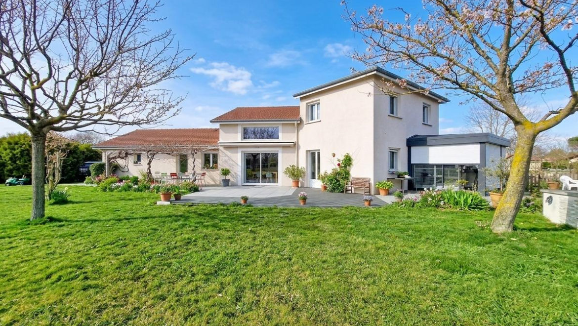 Cette maison d’architecture contemporaine de 2000 offre près de 203m² habitable avec au rez de chaussée, hall, cuisine équipée, cellier, buanderie, salon/séjour avec plafond cathédrale et baie coulissante en galandage accès terrasse et jardin, salle de jeux, deux chambres, véranda, salle de bains et wc.