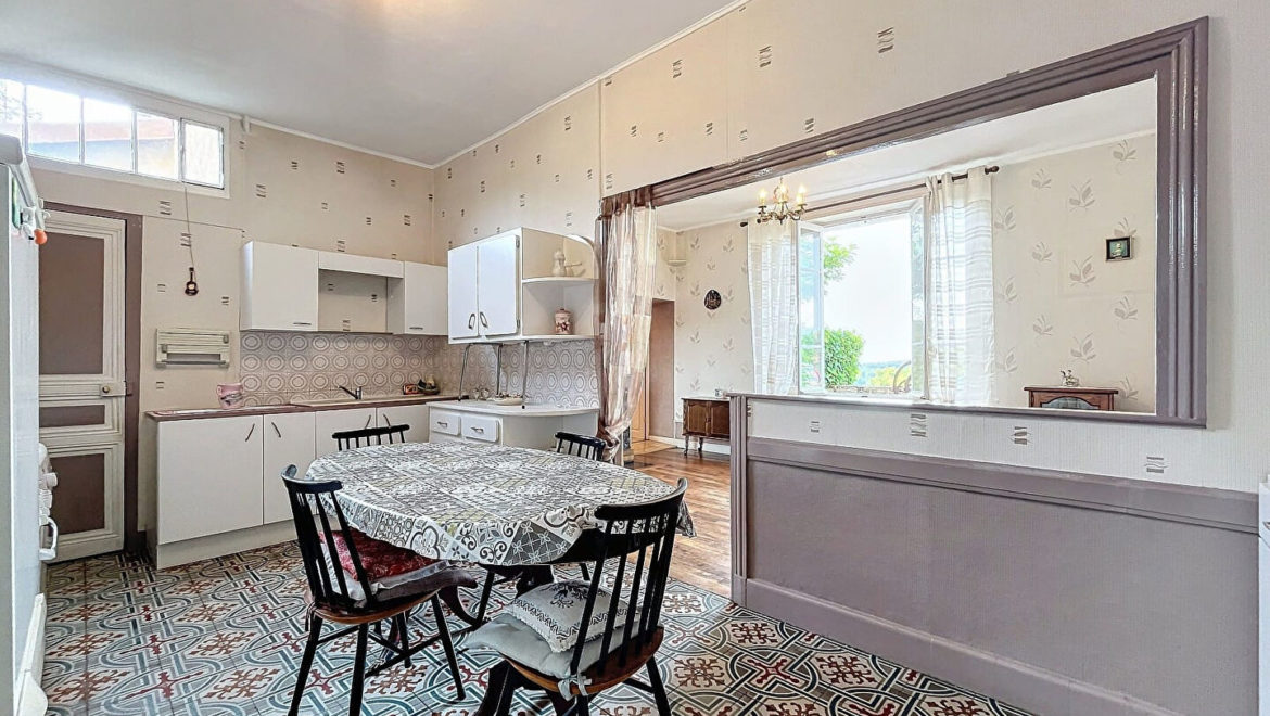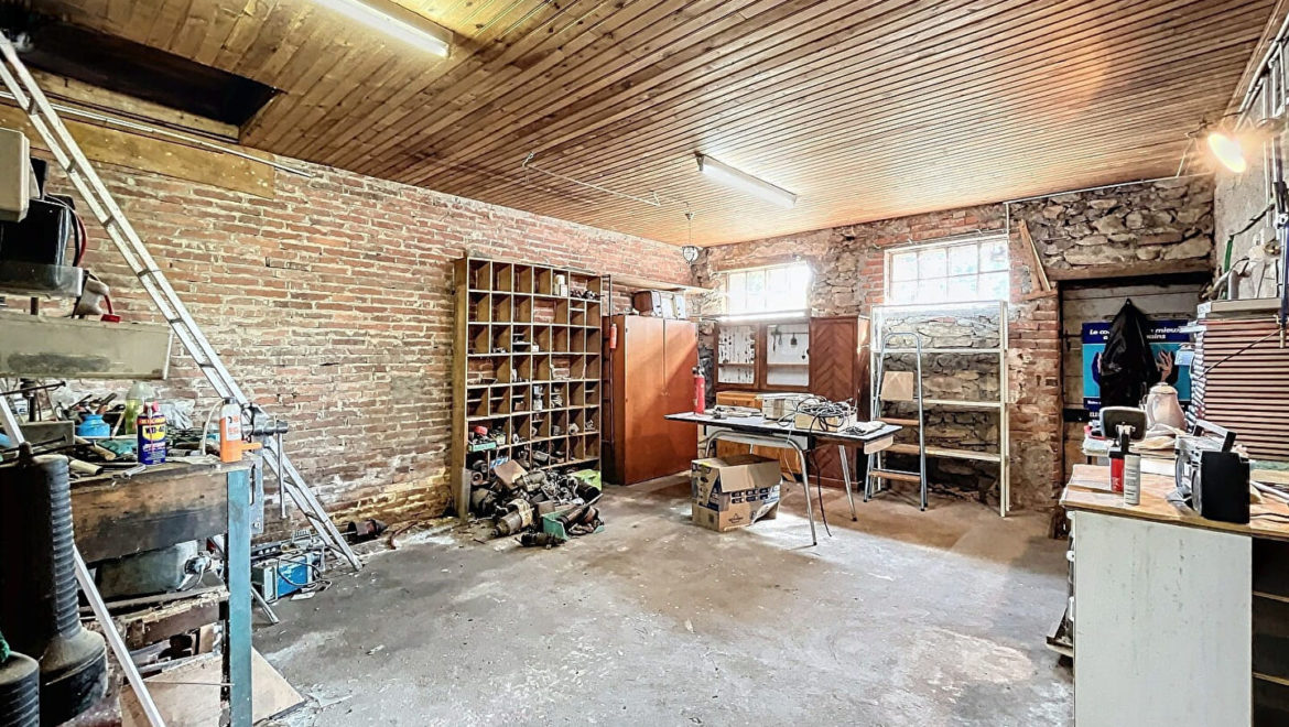 L’état général de la maison est à rafraîchir, fenêtres en bois simple vitrage. Le chauffage est assuré par des radiateurs fonctionnant au fuel. L’assainissement est tout à l’égout. La maison dispose d’un grand garage fermé, d’une cave.