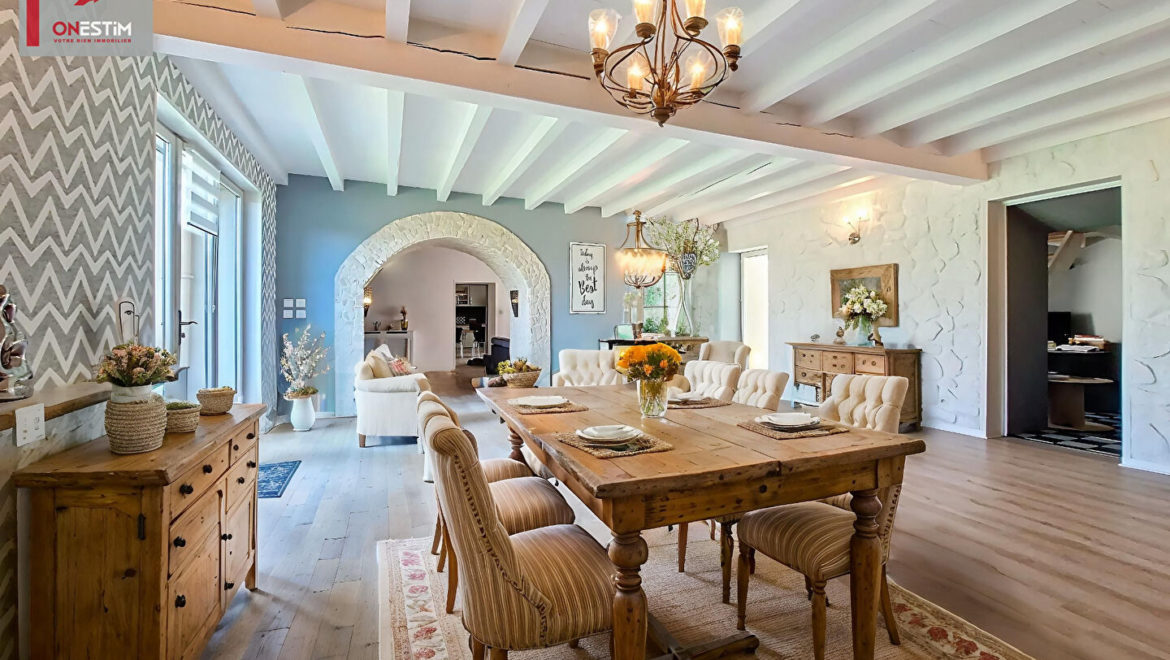 Avec ses 243m² de surface habitable, cette fermette en pierre pisé vous séduira par son charme et sa rénovation. Elle dispose de 7 pièces, dont 3 chambres + bureau (possibilité plus), et s’étend sur un terrain spacieux de 1320m² (entièrement constructible avec son entrée indépendante).