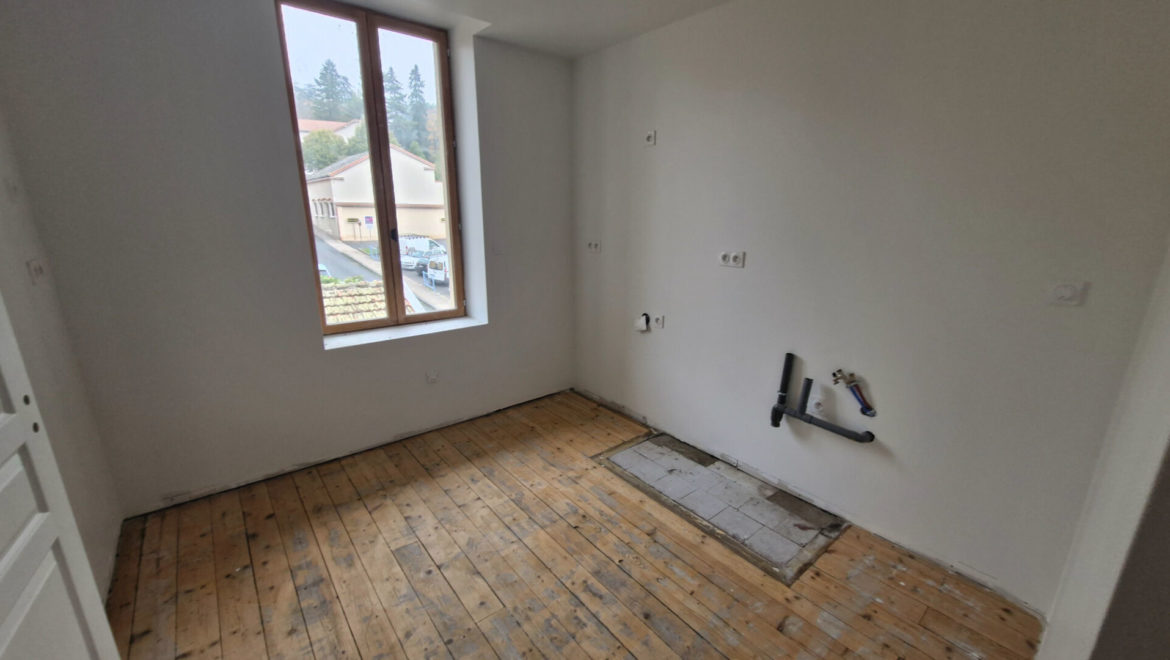 Travaux à prévoir dans les appartements : cuisine, revêtements de sol et raccordement des radiateurs (matériel sur place).