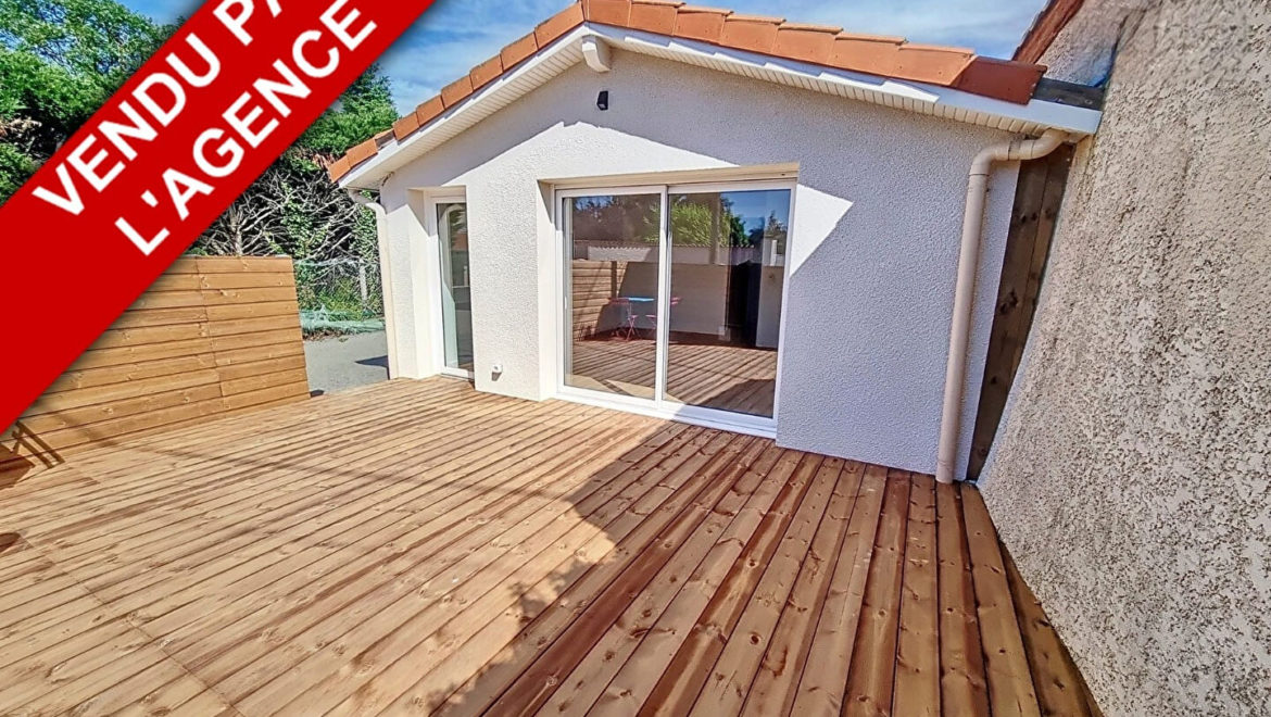 Cette maison individuelle rénovée avec gout en 2024 offre une surface de 59m² avec une belle pièce de vie ouverte sur terrasse bois expo sud, cuisine équipée neuve, deux chambres, salle d’eau, wc. Terrasse 30m². Deux places de parking privatives.