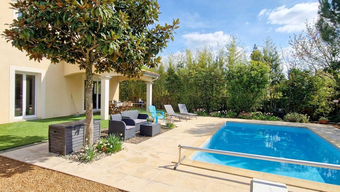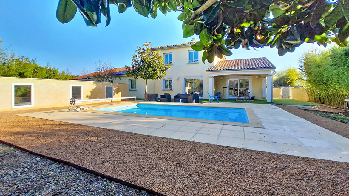 SUPERBE ! Magnifique maison de 190m² habitables située dans un secteur prisé en impasse à deux pas du centre de Montrond-Les-Bains. Implantée dans une rue calme, sur une parcelle de 1323m², cette demeure comprend une terrasse de 100m² donnant sur la piscine, et un garage ouvert pouvant accueillir 2 véhicules.